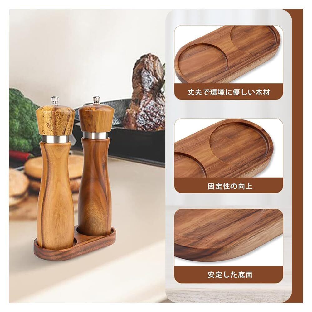 素材:ソルト&ペッパーミルトレイはアカシア材で作られており、長持ちするように作られており、お手入れが簡単で、使用が されています。