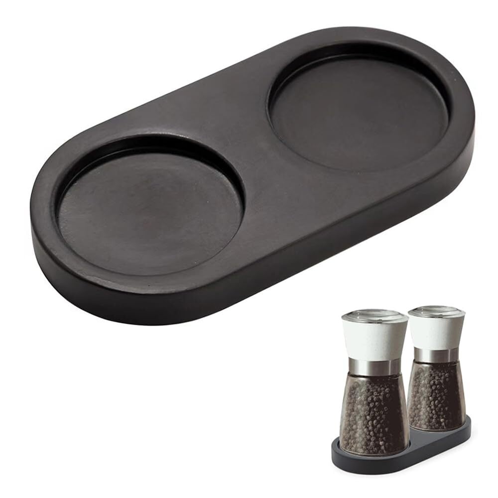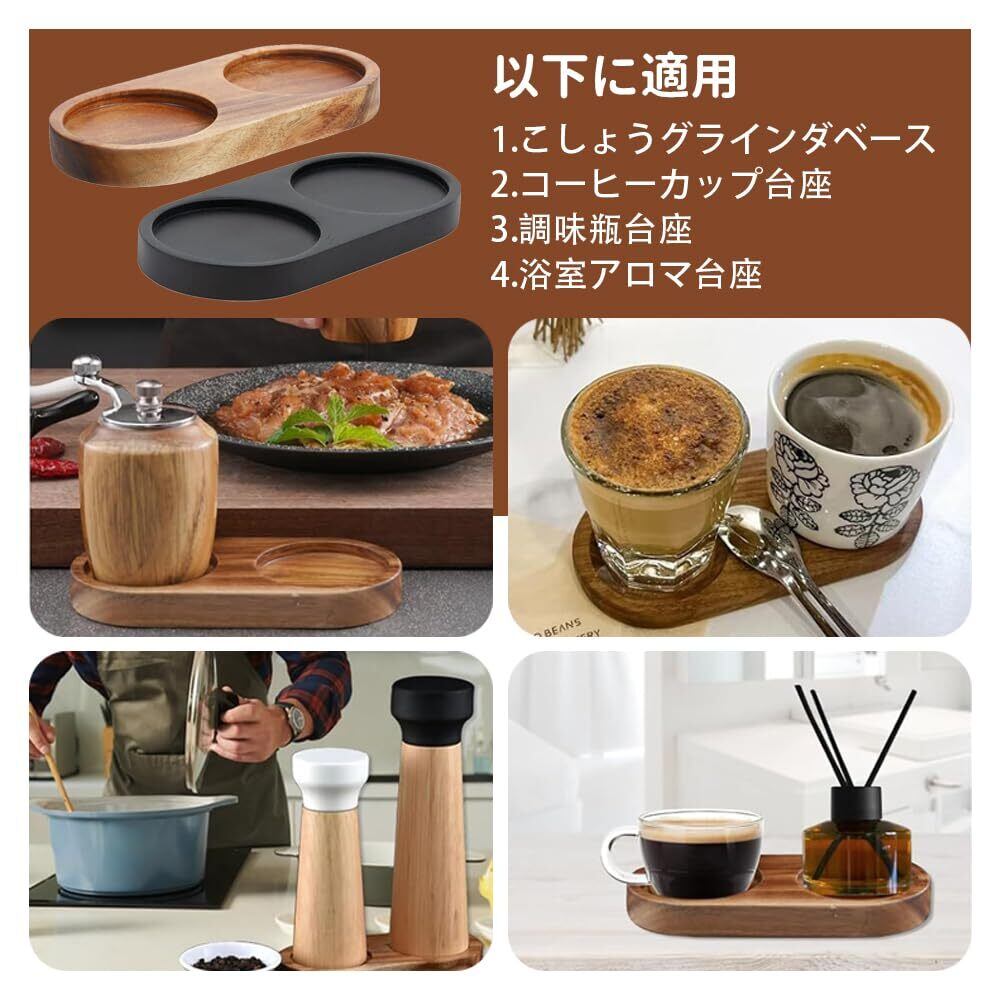 ミルトレイウッドトレイ ペッパーミルベース 塩コショウミルトレイ木製 調味料 オイル ビネガー ボトル ホルダー ハンドル無 多機能 滑り止め キッチン 装飾 収納(ブラック)