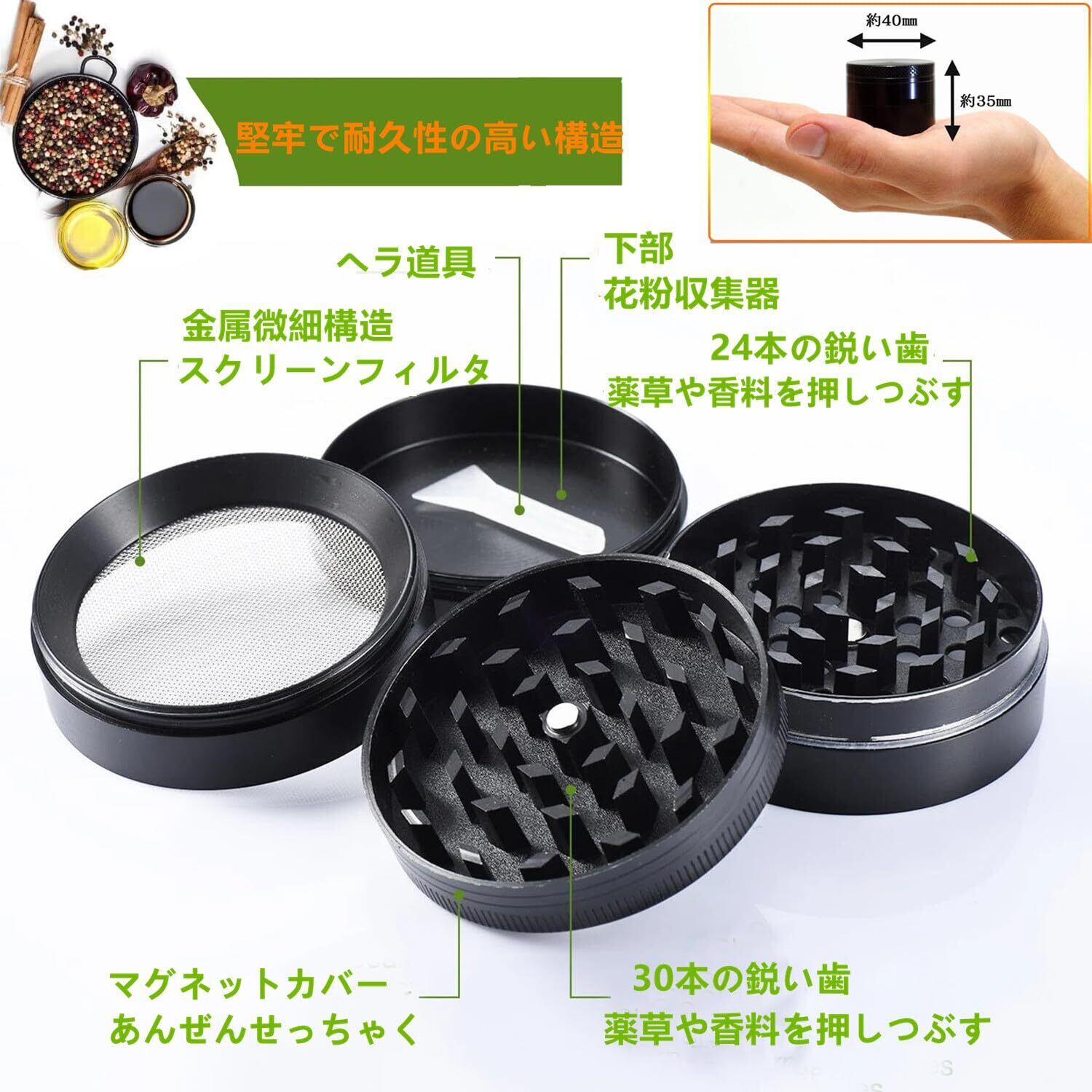 マルチミル 小型 グラインダー タバコ ハーブ 喫煙具 携帯用 4層 亜鉛合金製 コンパクト ヘラ付き粉末ミル ペッパー/胡椒 グラインダー 大麻 お茶ミル 手動製煙器