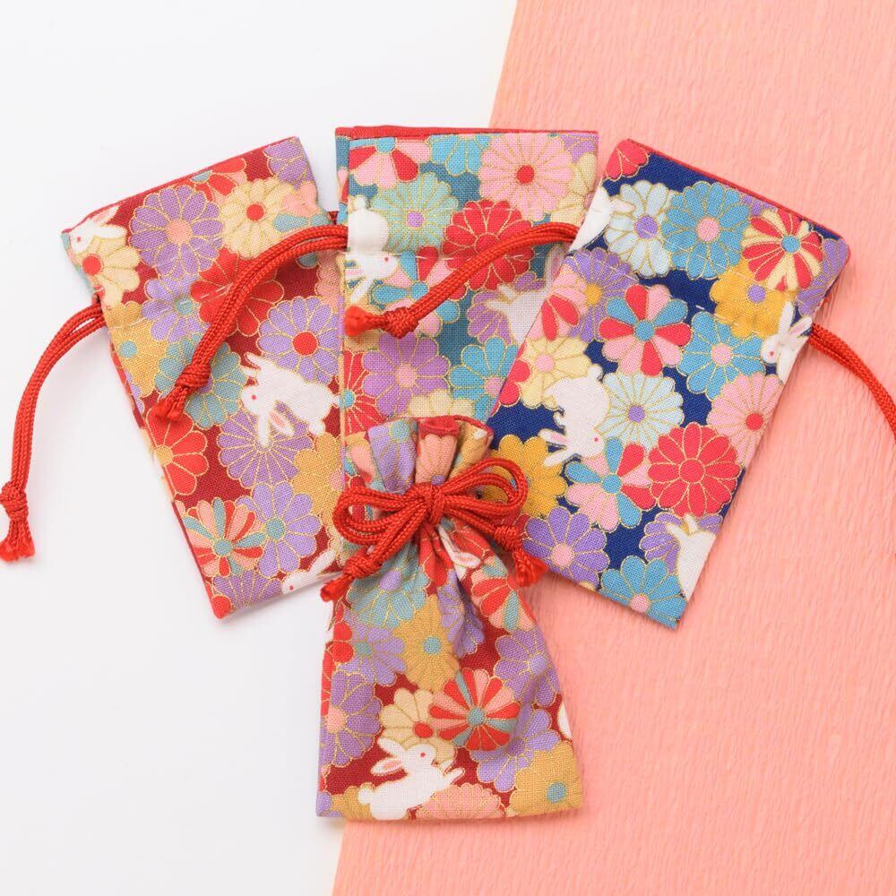 ひらの屋 お守り袋 巾着 パワーストーン 持ち塩 持ち砂 ミニ うさぎ 可愛い 出雲【赤/緑/青】 (緑)