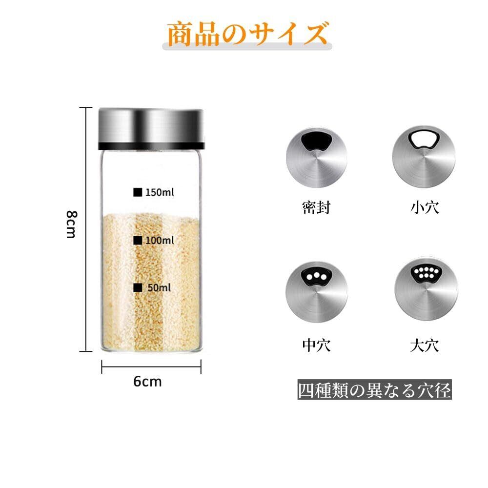 調味料入れ 耐熱 ガラス 保存容器 砂糖 塩 容器 片栗粉入れ シュガーポット 調味料ボトル 粉ふり缶 スパイス 小麦粉 コショウ ケース 150ml 取り外し可能な蓋 清掃しやすく キッチン 台所用 2個セット