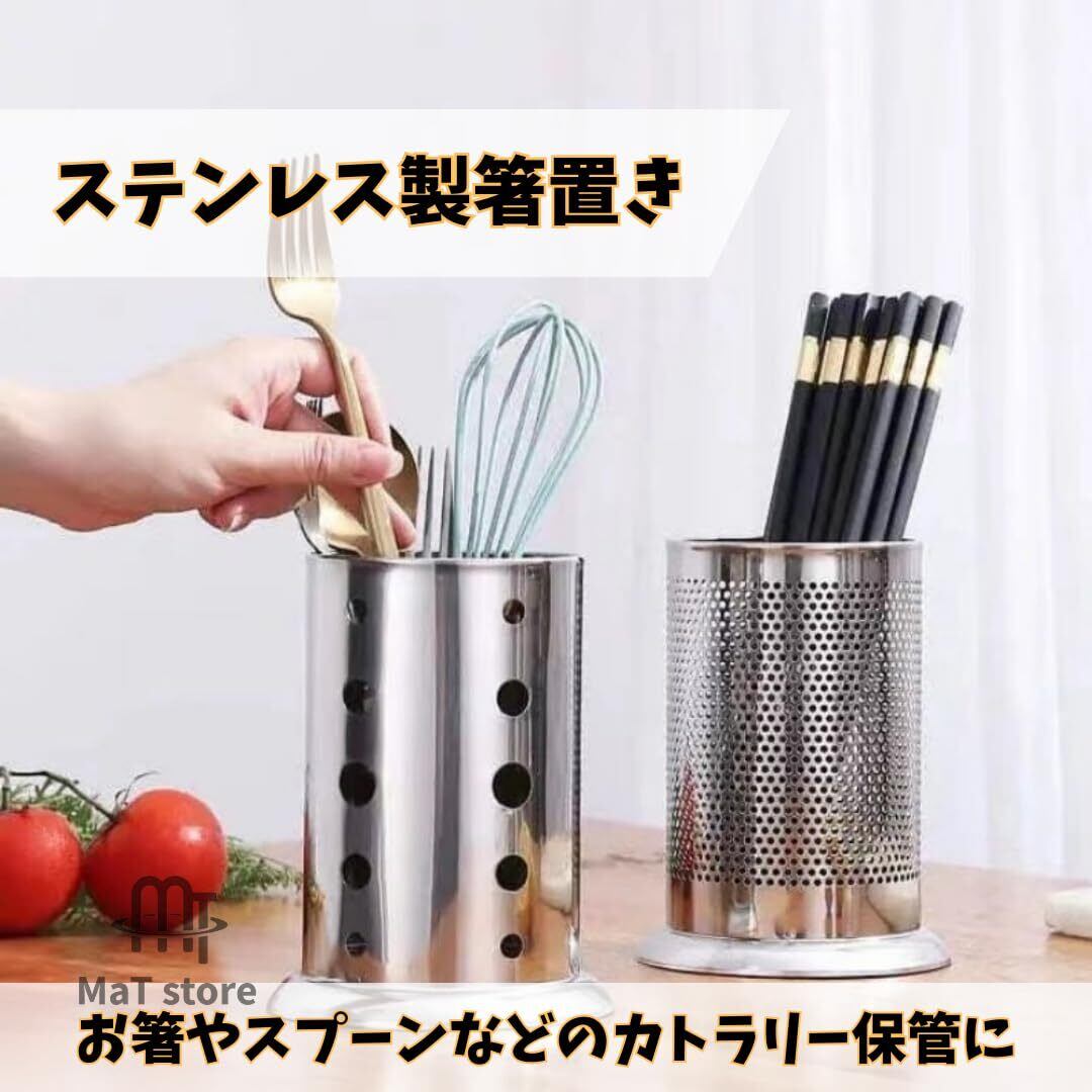 MaT store 箸立て 水切り ステンレス おしゃれ 箸 フォーク スプーン カトラリースタンド 収納 (小丸穴)