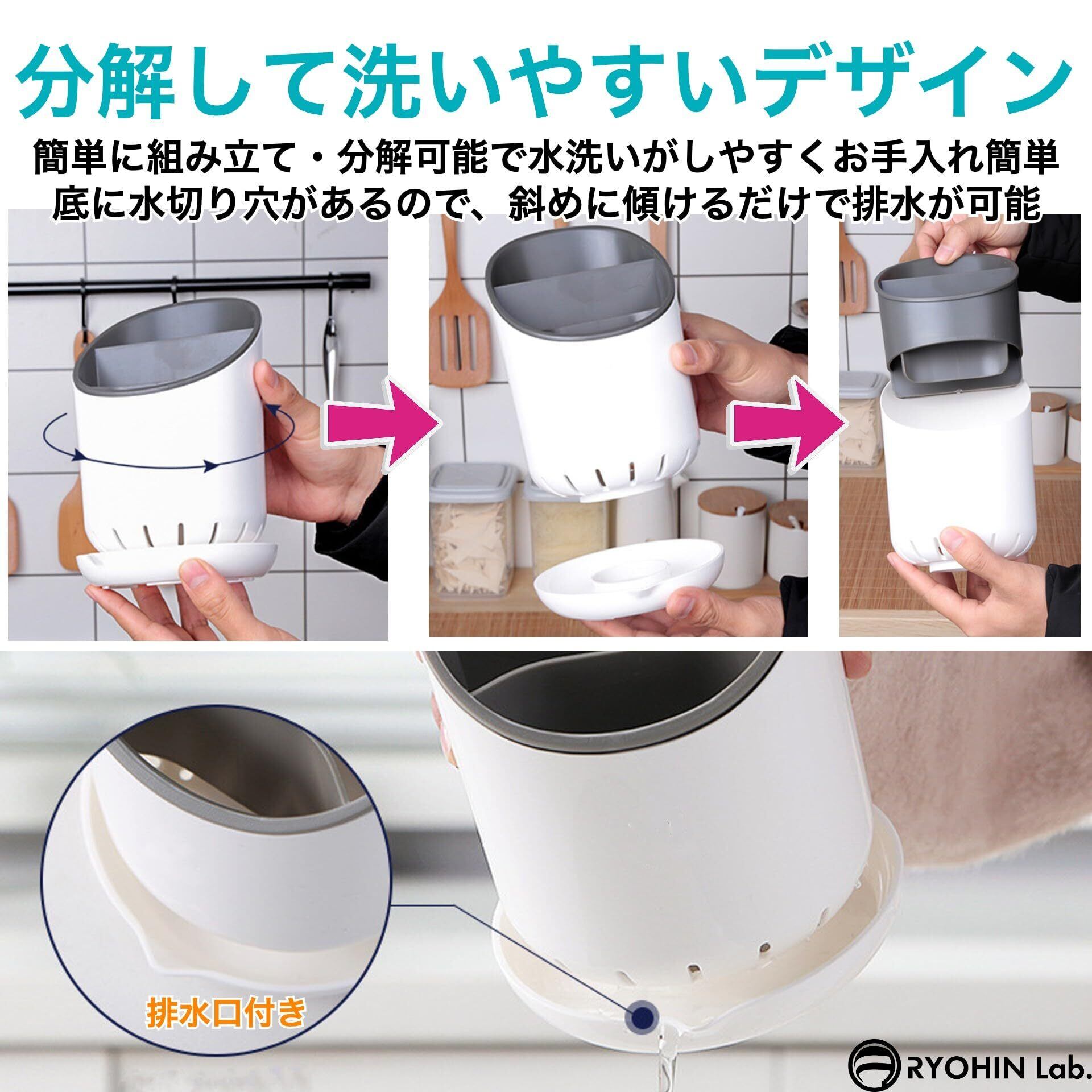 RYOHIN Lab.(良品ラボ) 箸立て 水切り スリム プラスチック 洗いやすい カトラリースタンド キッチン収納 多機能ラック 1個 (ホワイト)