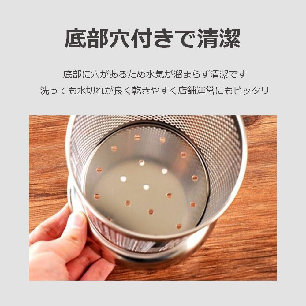 【美しさ長持ち】錆びに強いステンレス素材で美しい光沢が長持ち。底部に穴があるため水気が溜まらず清潔で、洗っても水切れが良く乾きやすく店舗運営にもピッタです。