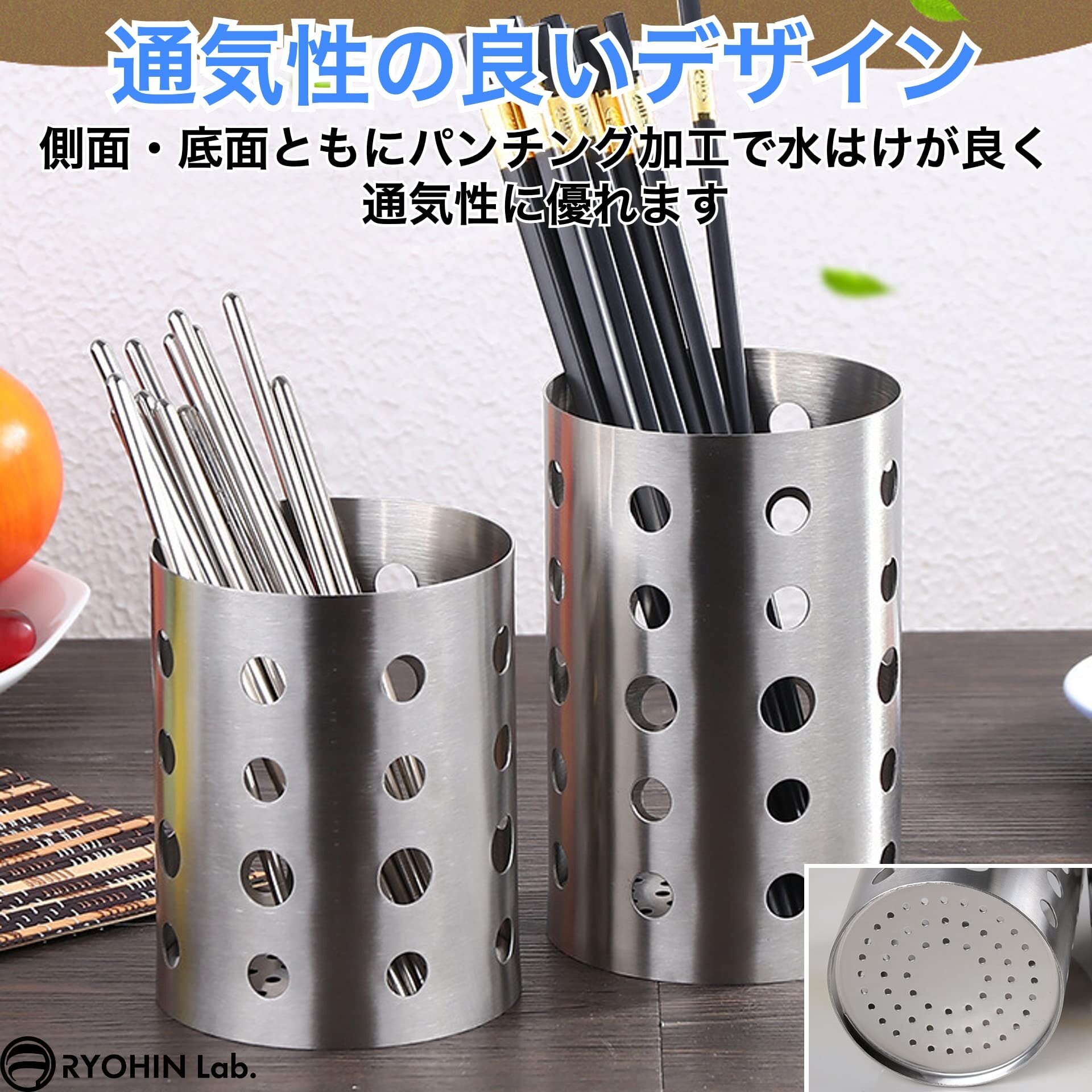RYOHIN Lab.(良品ラボ) キッチンツールスタンド ステンレス カトラリースタンド 水切り 箸 立て 収納 ラック 1個 (大)