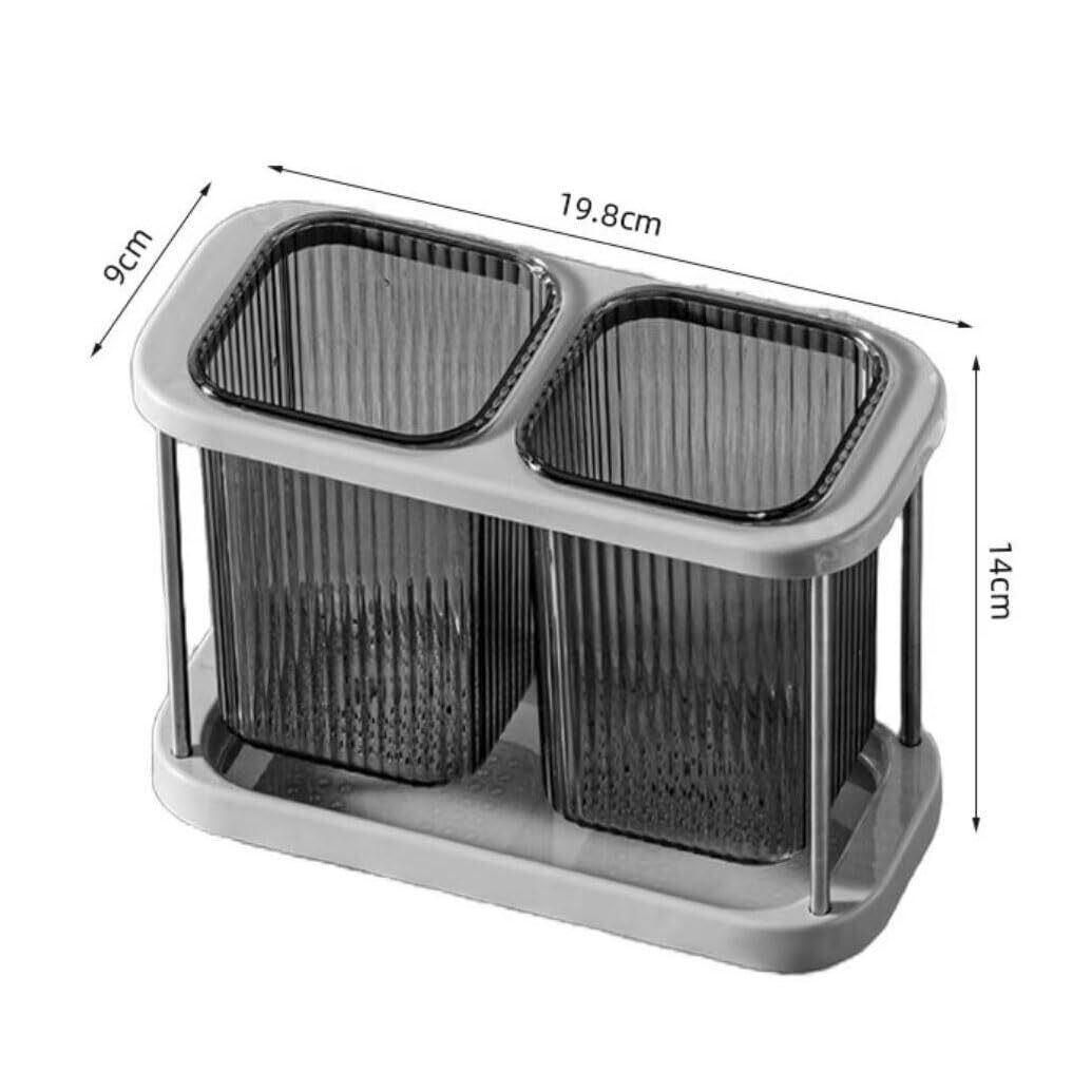 箸やフォーク、スプーンをまとめて収納できるカトラリースタンド。水切り機能付きで衛生的、コンパクトながら安定感のある設計。キッチンの整理整頓をサポートする実用的なアイテムです。