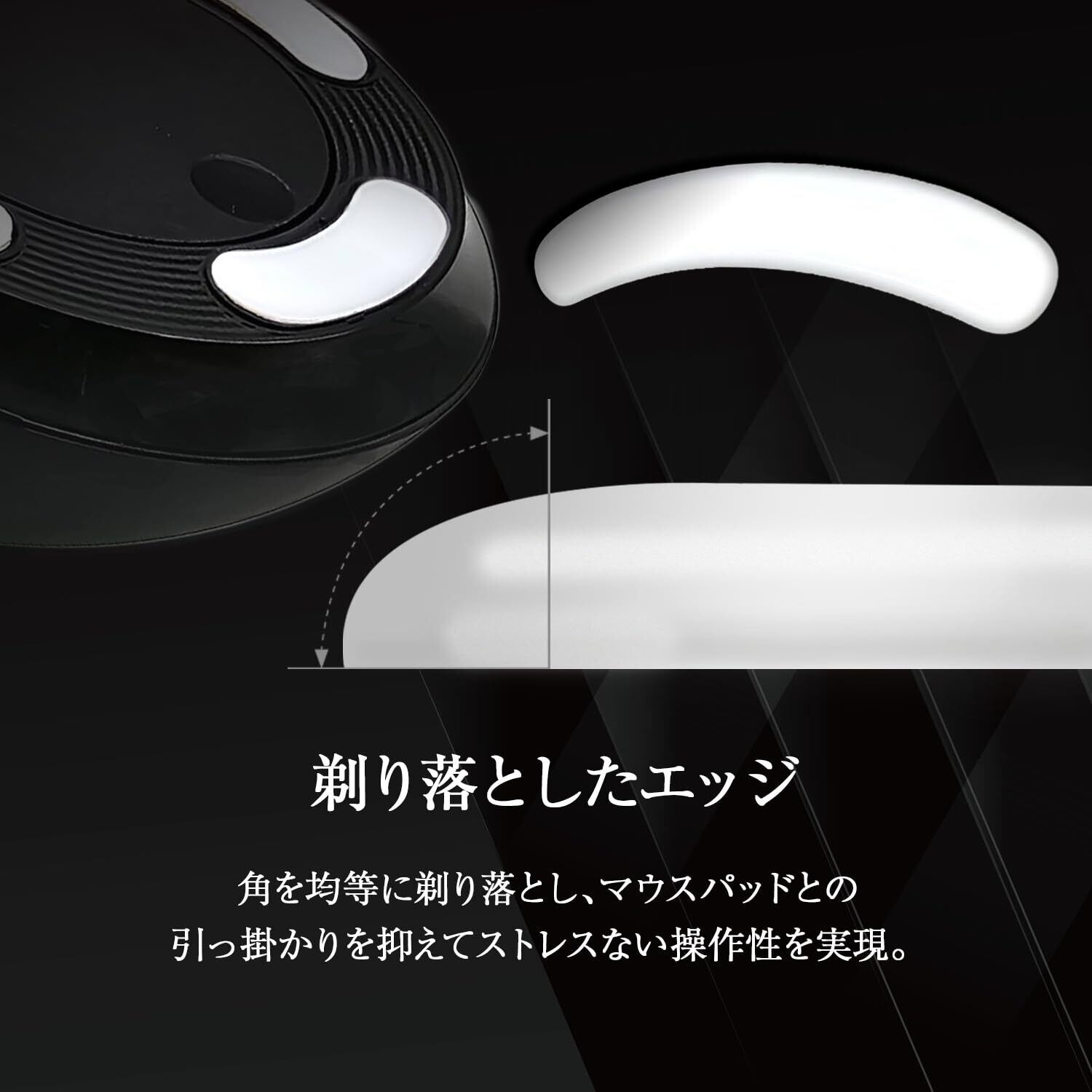 【削ぎ落としたエッジ】マウスパッドとの引っ掛かりを無くし、快適な操作性を実現。