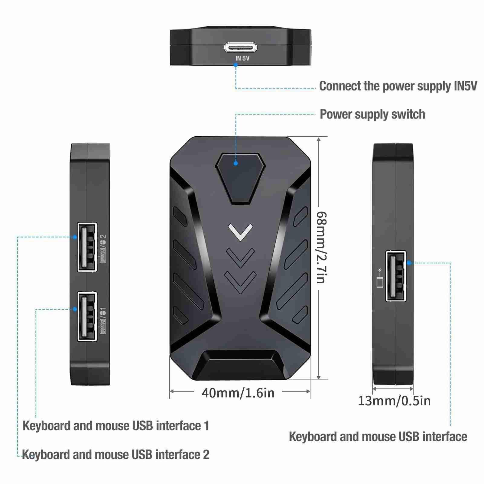 ゲーミング キーボード マウス コンバーター、接続して再生 4.0 接続 キーボード マウス コンバーター遅延なし for IOS (Mix Proが標準装備)