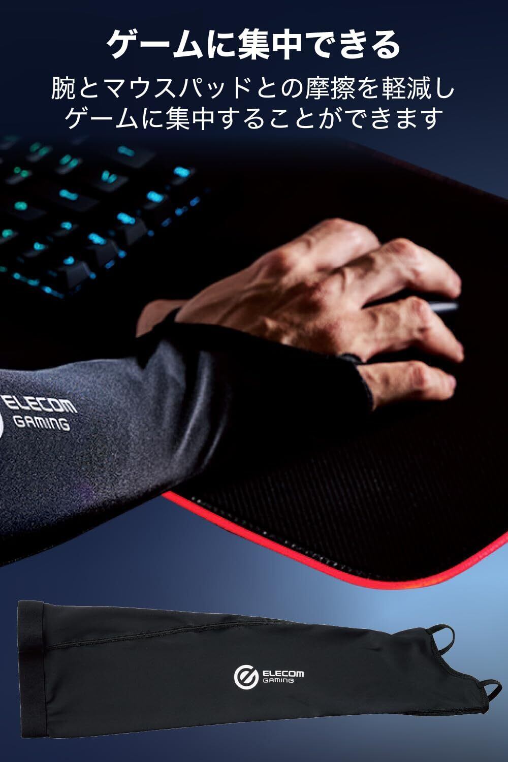 エレコム アームカバー ゲーミング用 V custom S-Mサイズ 指掛けタイプ 摩擦軽減 掌底部分もカバー 洗濯機OK 右手・左手対応 全長45cm 上腕周り25~29cm ブラック GWVA300LMBK