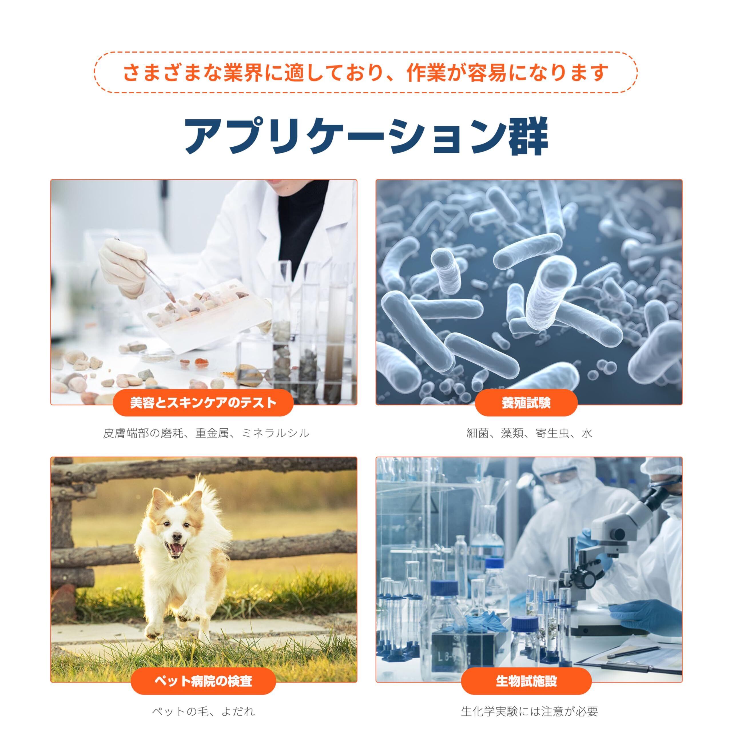 【45°傾斜単眼レンズ】人体工学設計に基づいた45°傾斜したアイチューブと360°回転可能な単眼ヘッドを採用しましたので、目や首の疲労を軽減し、より良好の観察視野で鮮明な画像を取得でき、長時間使用しても疲れにくいです。子ども、学生、研究初心者など、顕微鏡の操作にちょっと苦手な方にも、じっくりと操作を把握することができるように、使い心地いいデザインは大事です。授業や一対一指導には最適!みんなで一緒に科学を楽しもう!