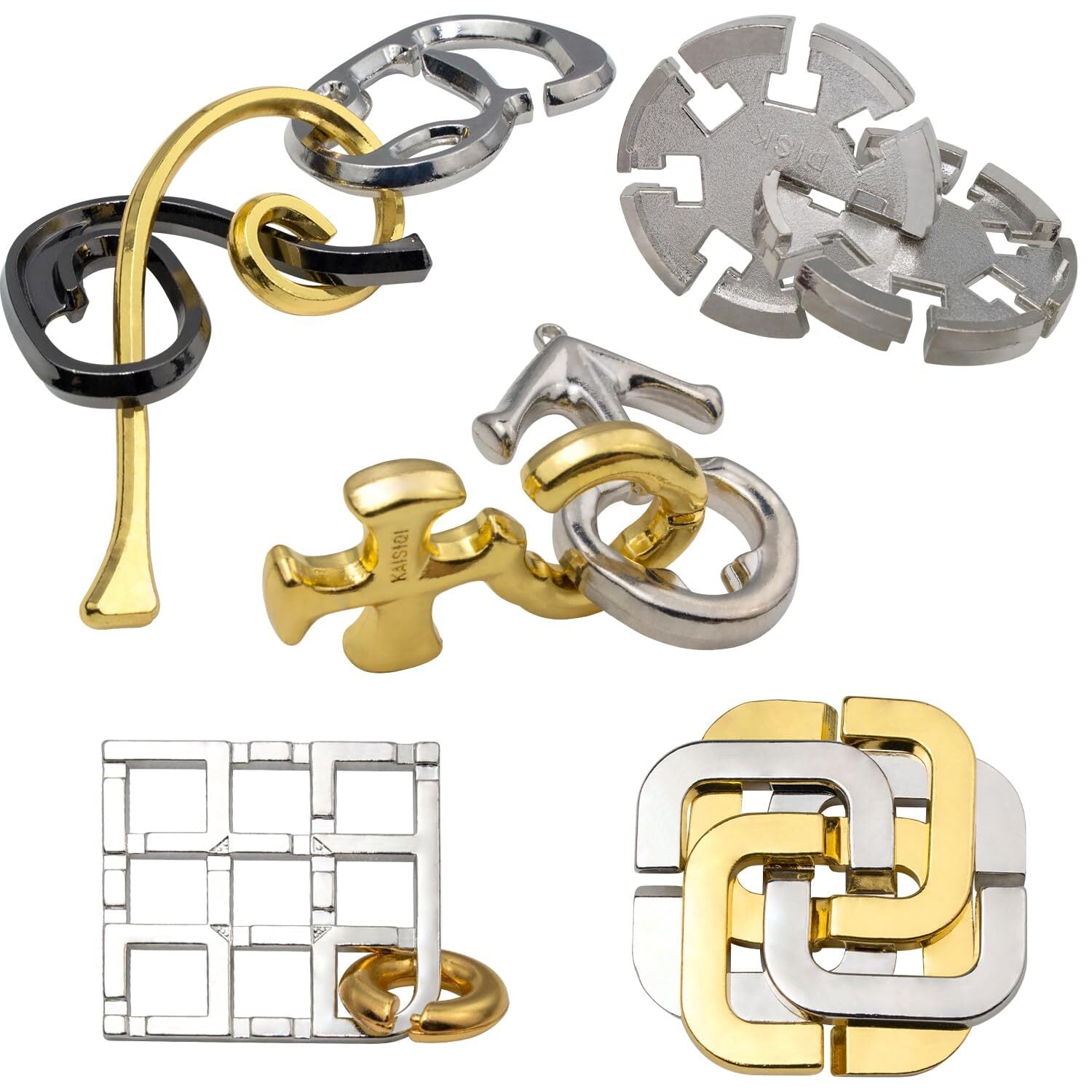 HUAZONTOM 知恵の輪 知恵おもちゃ 5点セット 難易度6~3 リングパズル 知恵玩具 大人 子供 謎解き 暇つぶしグッズ 立体パズル 知育 おもちゃ 銀光の謎シリーズ