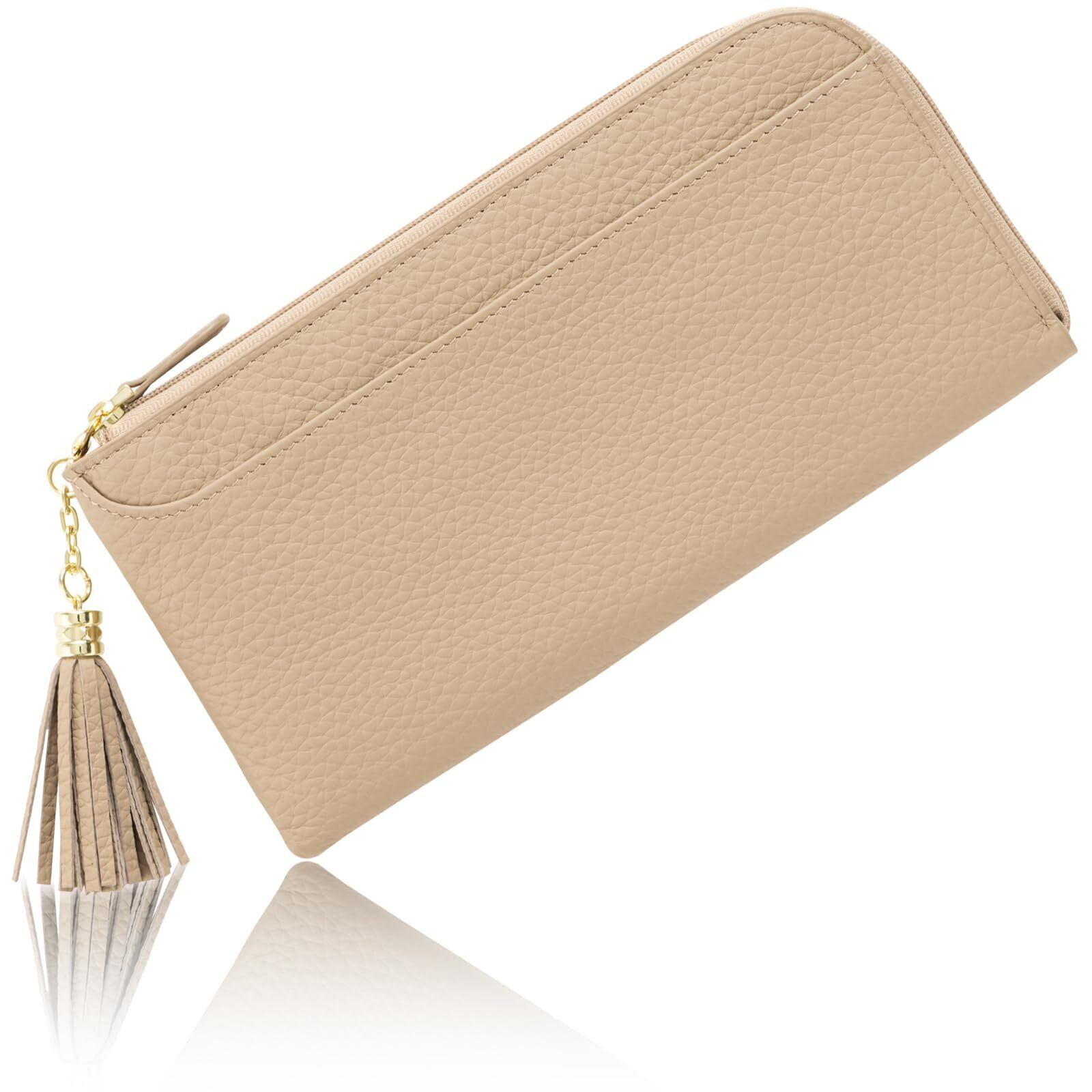 [GRAV] 【手になじむ柔らかな手触り】 (雑誌掲載品) レディース長財布 本革 長財布 財布 (薄くて軽い財布) レディース 薄型 薄い 軽量 スキミング防止 L字ファスナー ミニマル スリム財布 薄型ウォレット 小銭入れ 札入れ 大容量 ギフト (グレージュ)