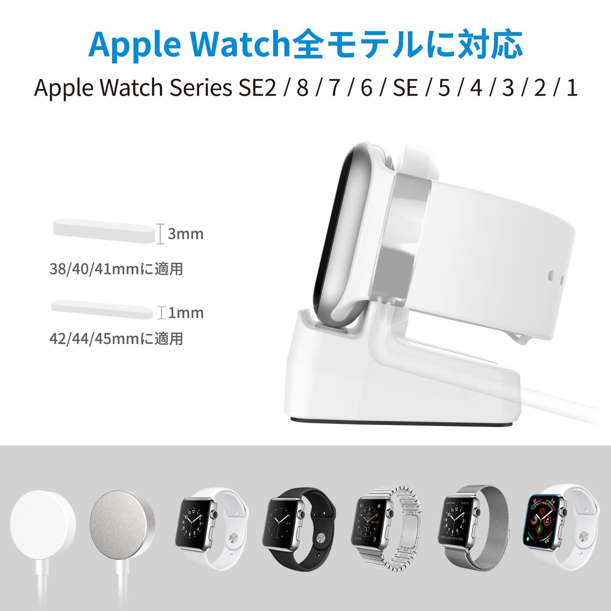 SPORTLINK Apple Watch 充電 スタンド - アップルウォッチ 充電 スタンド Apple Watch Series10 9 8 7 6 5 4 Ultra 2 1アップルウォッチ 49mm 45mm 41mm 38mm 40mm 42mm 44mm 全機種対応 置くだけ充電ドック 充電機 スタンド すたんど ホルダー 充電ケーブル 収納 ナイトスタンド クレードル (ホワイト)