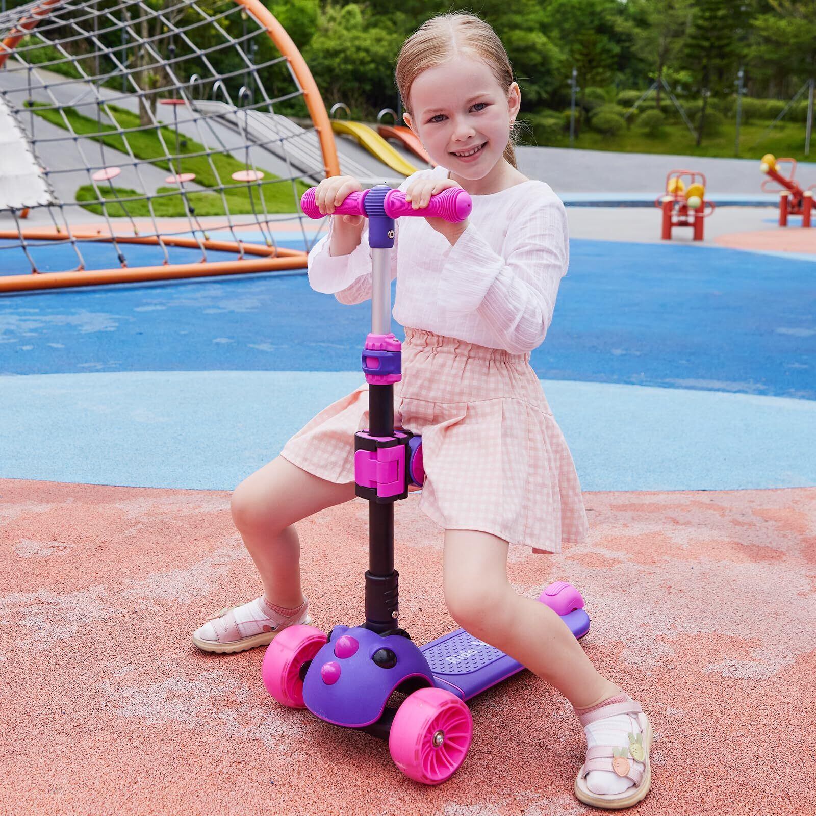 キックスクーター 子供用 キックボード RideVOLO 2way三輪車 三段階高さ調整 62/74/81cm 光るLEDタイヤ 折り畳み式 シート高さ調節可能 方向変換 耐荷重50kg アウトドアに適用 おもちゃ 安定 ギフトに最適 パープル
