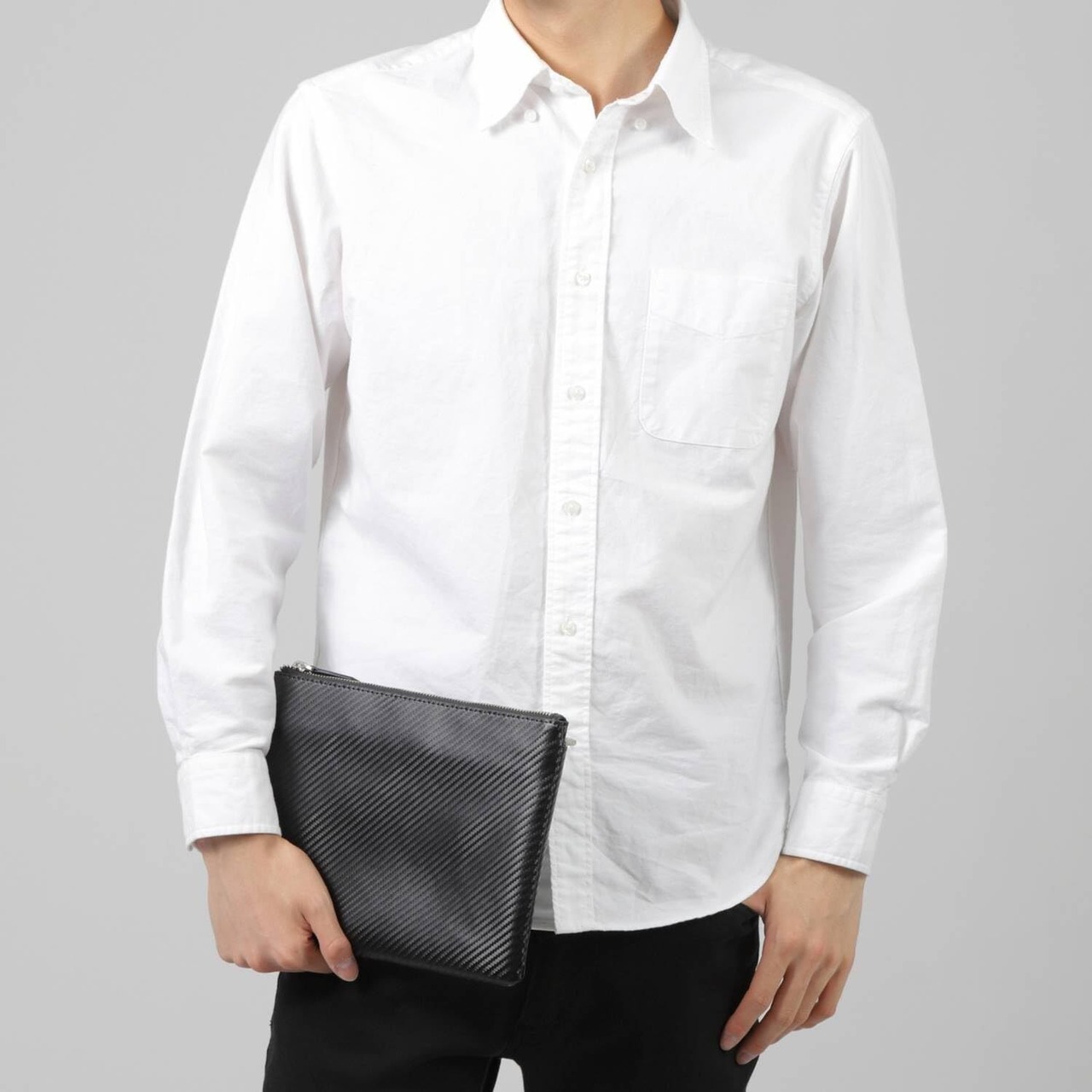 【 素材 】外側 / 本革(牛床革) 内側 / ポリエステル 【 サイズ 】約 縦20cm×横25cm×厚み2.5cm(ベルト80~145cm) 【 重量 】約300g 【 仕様 】外側 / マグネットボタンポケット×1 内側 / オープンポケット×2、ファスナーポケット×1 【 生地 】 サフィアーノレザー / カーボンレザー 【 カラー 】 ブラック