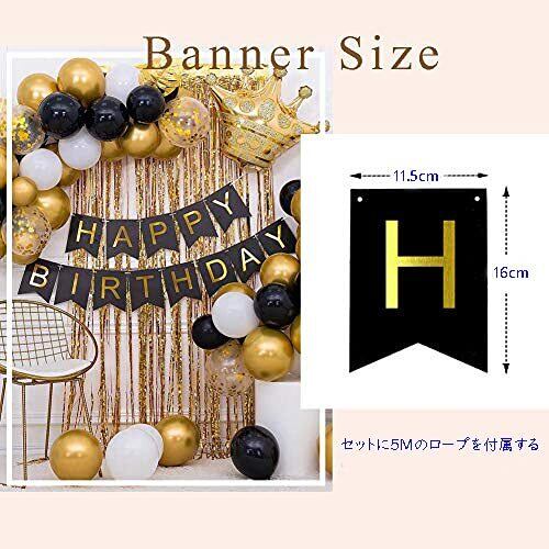 誕生日 飾り 飾り付け ガーランド バースデーガーランド HAPPY BIRTHDAY フラッグ 壁 サプライズ パーティ (HAPPY BIRTHDAY-黒)