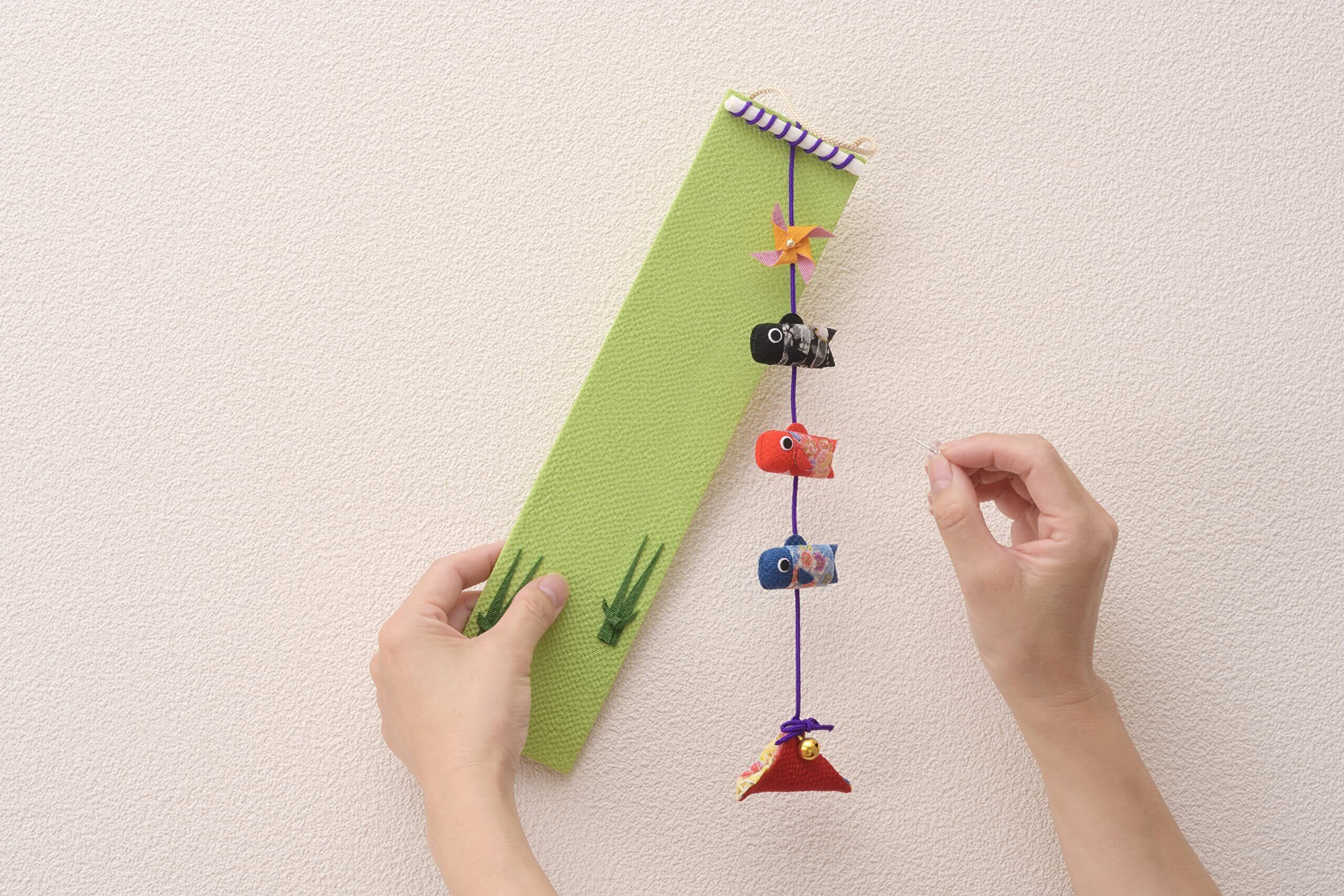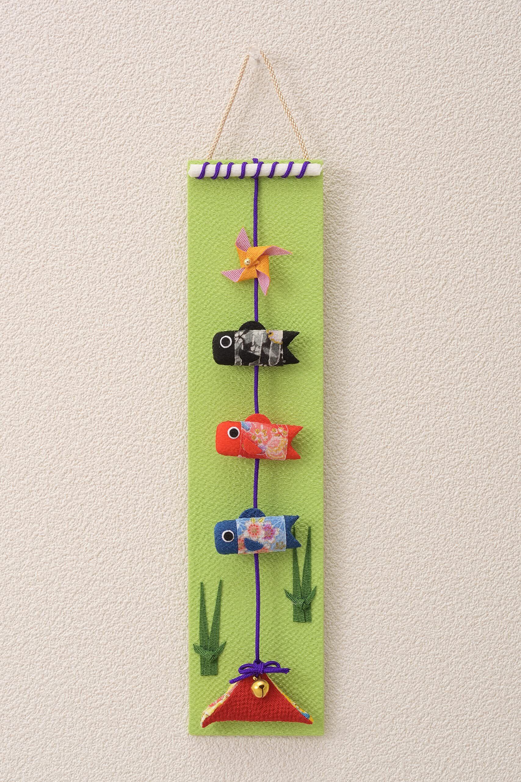ちょっとしたスペースに季節の装いを! ちりめん細工の鯉のぼりたちが和やかな雰囲気を演出です。手軽に端午の節句を楽しめるサイズです。※ちりめん 吊りタペストリー以外は商品ではありません。