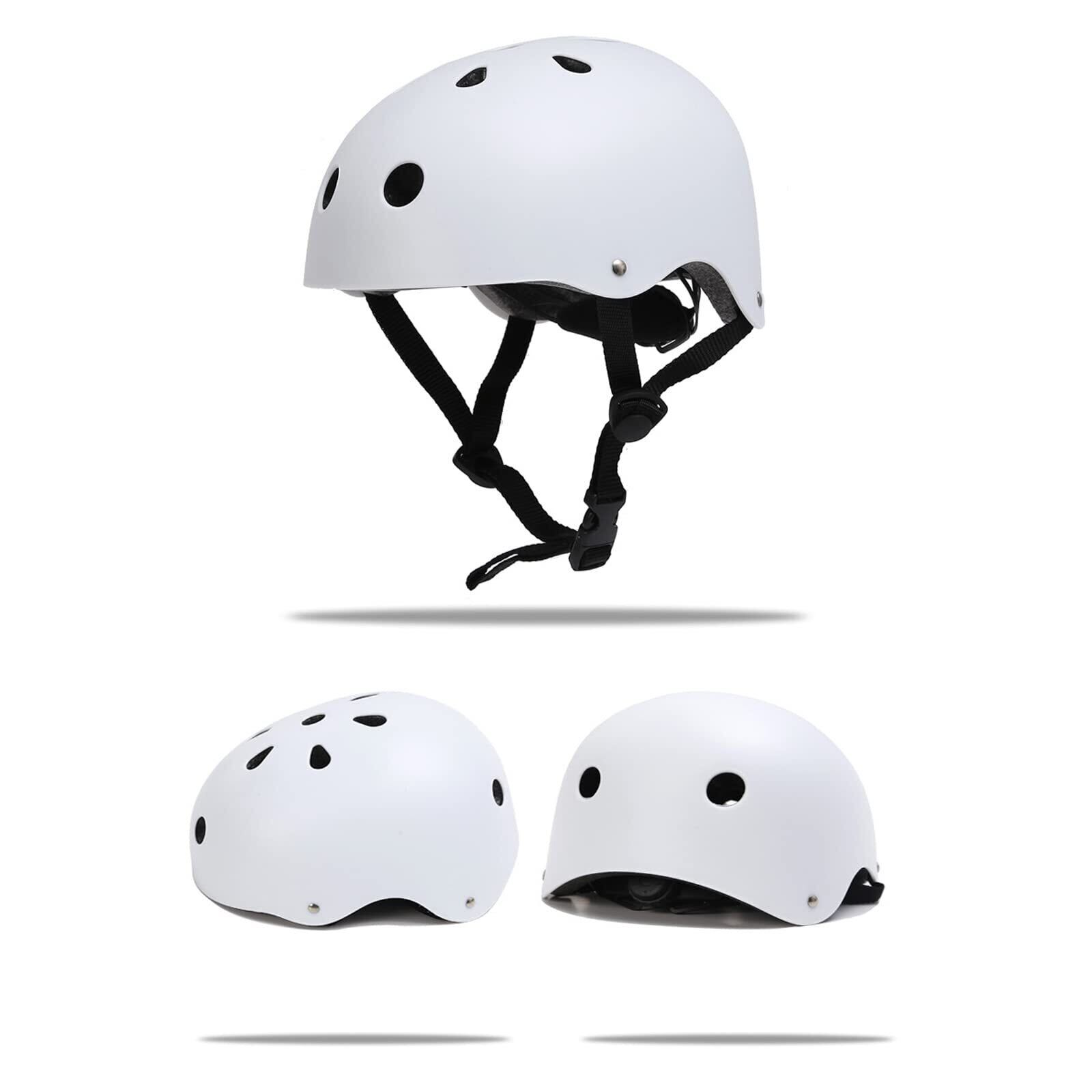【耐衝撃性&高通気性】この保護用ヘルメットセットは高品質な素材を採用しています。ヘルメット:高密度で耐久性の高いABS外殻+厚さ20mmのEPS発泡スチロールb.。プロテクター:PVC/メッシュ布/スポンジ。衝撃圧力を効果的に吸収し、頭を直接衝撃から保護して、安全を提供します。ヘルメットの上で良い換気と冷却効果がある11の穴を設計ので内部に空気の流れを生みだします。頭の汗を流しやすいお客さまがすっきりと感じします。