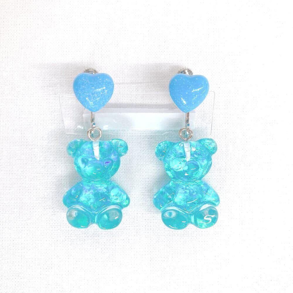minacute(ミナキュート) ベアイヤリング ブルー Q1042