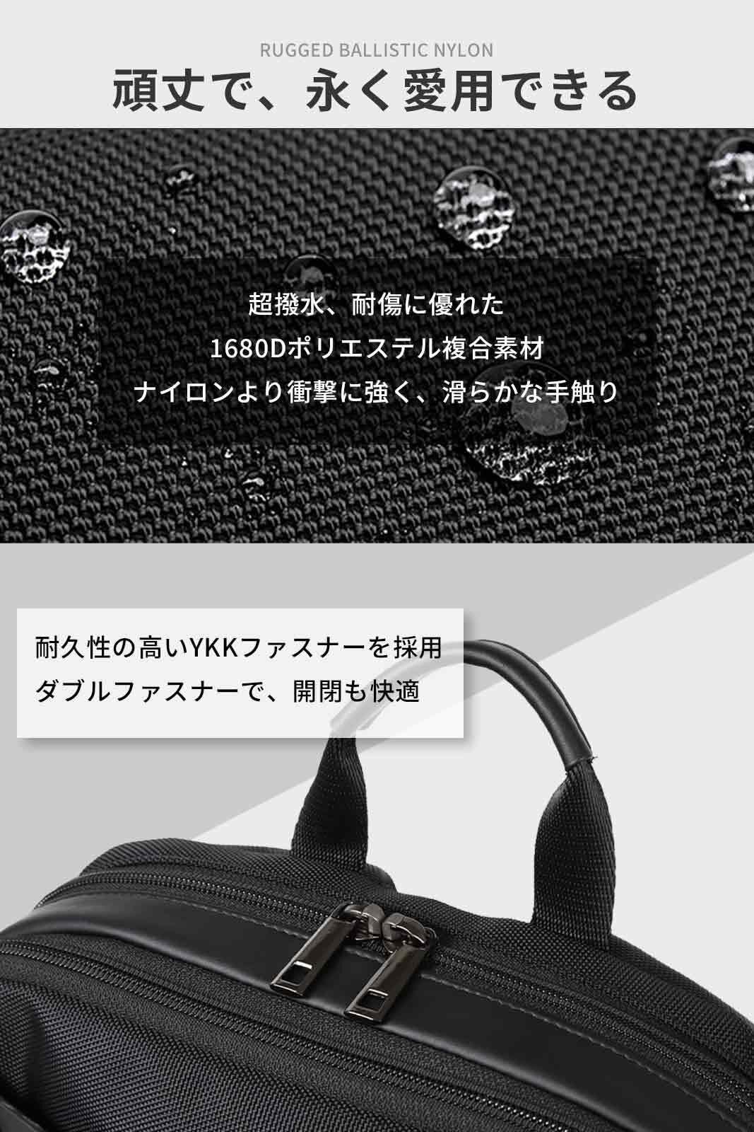 【超撥水、傷にも強い】 水を弾き、耐衝撃の1680Dのポリエステル複合素材を採用。防弾チョッキなどの軍事用にも使われる素材で、頑丈で長く愛用できるため、コスパも最強です。 1680DのD(デニール)とは、生地の厚さを意味します。一般的なバッグは500D程度です。