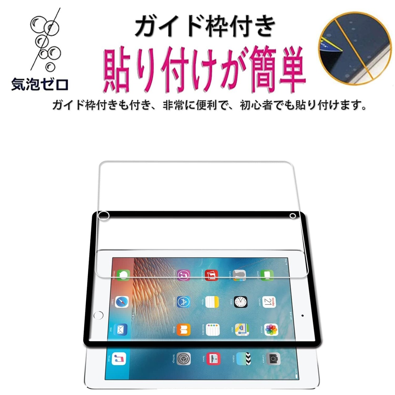 【2枚セット】ガイド枠付き KPNS 日本素材製 強化ガラス ipad 9.7 インチ / 5世代2017 / 6世代 2018 / iPad Air 2 / iPadAir 2013 / iPad Pro 9.7 用 ガラスフィルム 強化ガラス カバー 保護フィルム