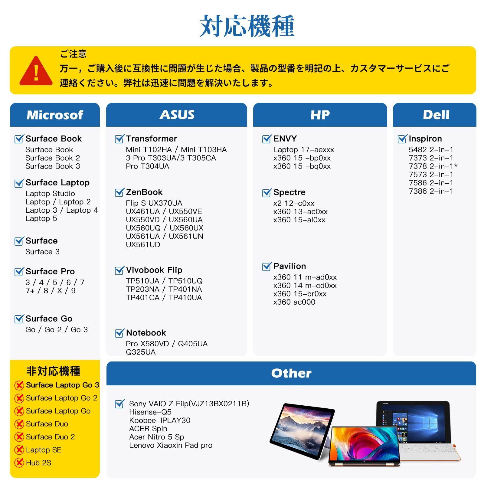 【高互換性&MPP準拠のWindows 10機種に対応】MPP2.0(Microsoft Pen Protocol 2.0)に対応した端末で使えるアクティブタッチペンです。 Surface3/ Surface Pro 3/4/5/6/7/8/X/ Surface Laptop/Laptop2 /Book/Book2/ Studio/Studio2 /Go/Go2/Go3 /Surface gosoftに対応。 ASUS/Acer/DELL/SONY/HP等の部分機種「詳しい対応機種について取扱説明書や商品の画像をご覧ください」ご注意:お使いのPCまたはタブレットでWindows 10 にアップグレードする必要があります。