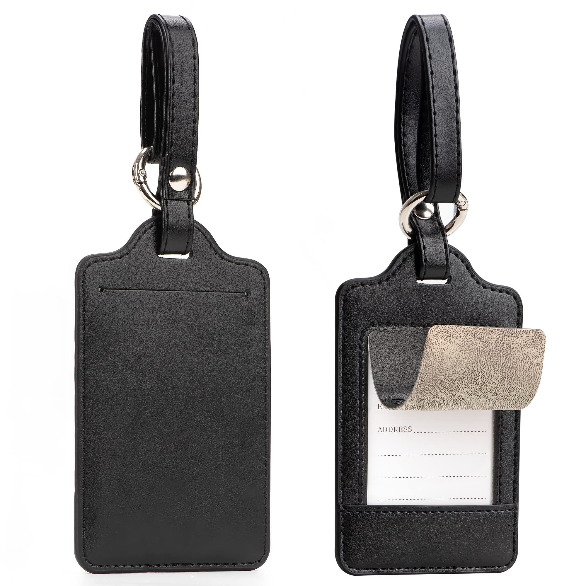 [2枚セット] 荷物タグ ネームタグ - スーツケースタグ 紛失対策 名前ラベル IDカード用 社員証 レザー バッグ用ネームタグ ビジネス 防塵 番号札 出張用 旅行 軽量 Migeec (ブラック+ブラック, 2枚セット)