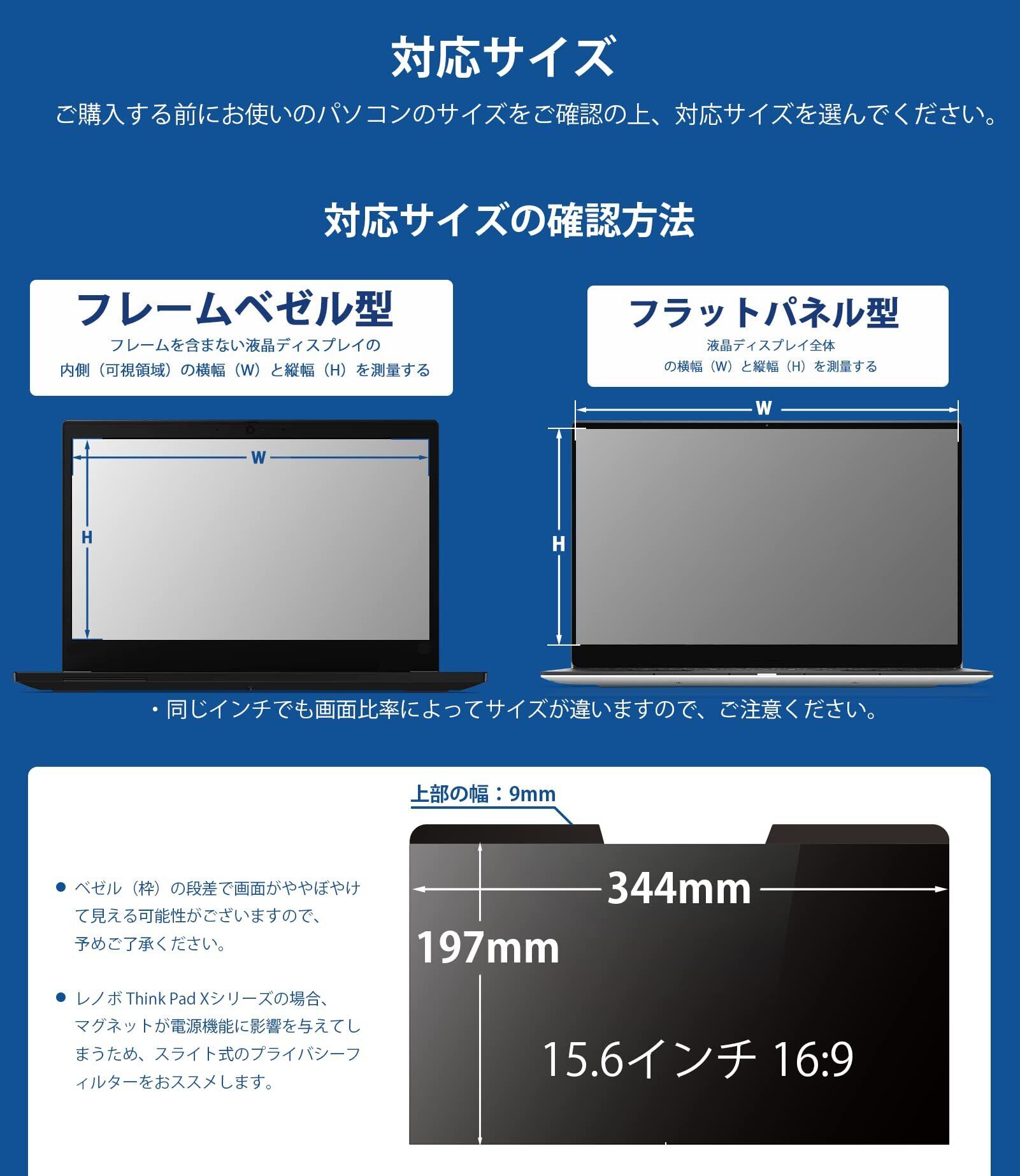 【対応機種】16:9 15.6インチ(344×197㎜)のパソコンが対応できます。詳細の測定方法は商品画像3枚目をご参照ください。■※非対応機種:レノボ Think Pad Xシリーズ(Think Pad X390, X1 Carbonなど。マグネットが電源機能に影響を与えてしまうため。)【12ヶ月安心サービス】は12ヶ月の安心を提供して、商品に何か質問がございましたら、また商品到着時、ご注文と異なる商品が届いた場合や、初期不良などがある場合、ぜひご遠慮なく、お問い合わせください。わなく、美しく表示します。両面は使用環境や用途に応じて、自由に使い分けることができます