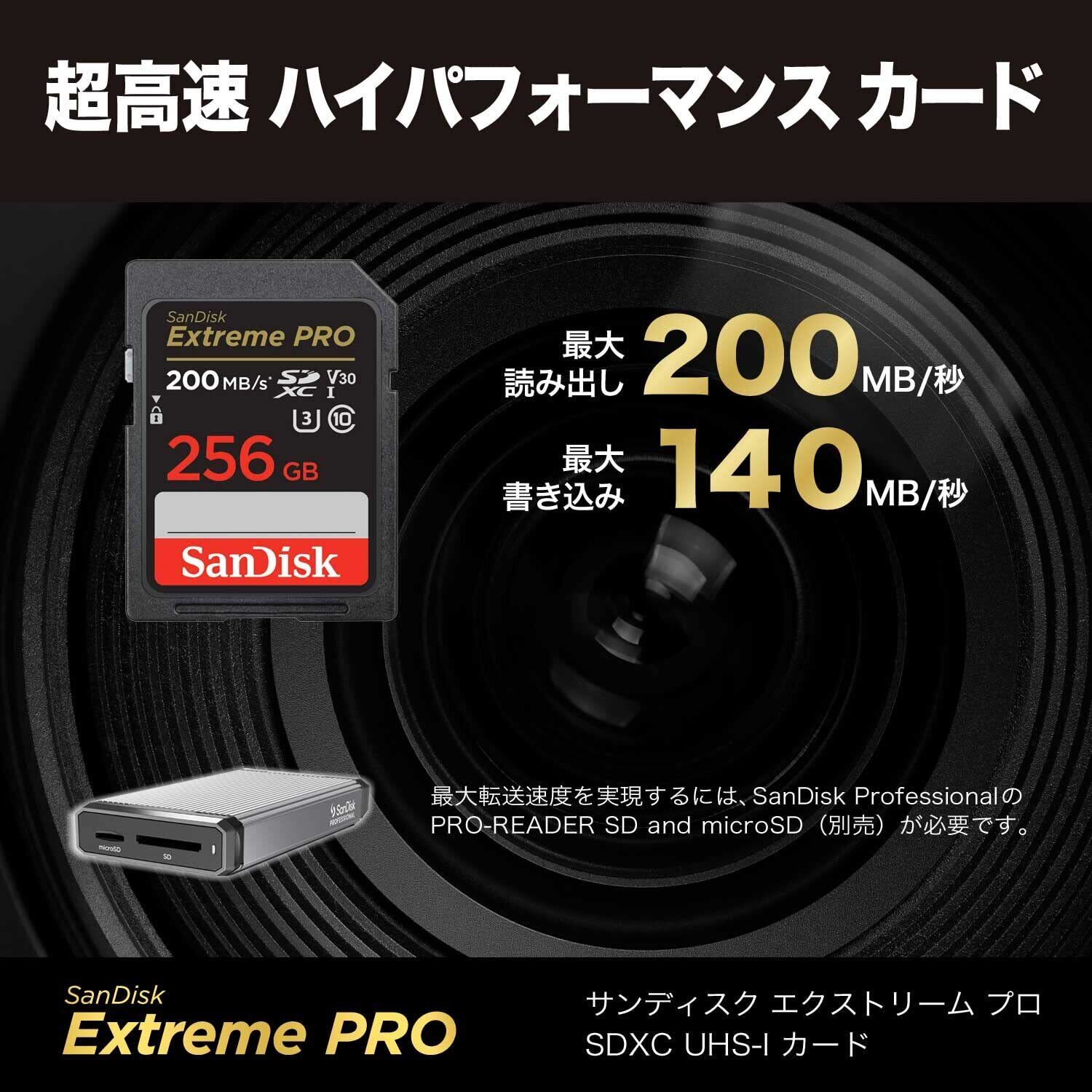 【 サンディスク 正規品 】 SDカード 256GB SDXC Class10 UHS-I V30 読取最大200MB/s SanDisk Extreme PRO SDSDXXD-256G-GHJIN 新パッケージ
