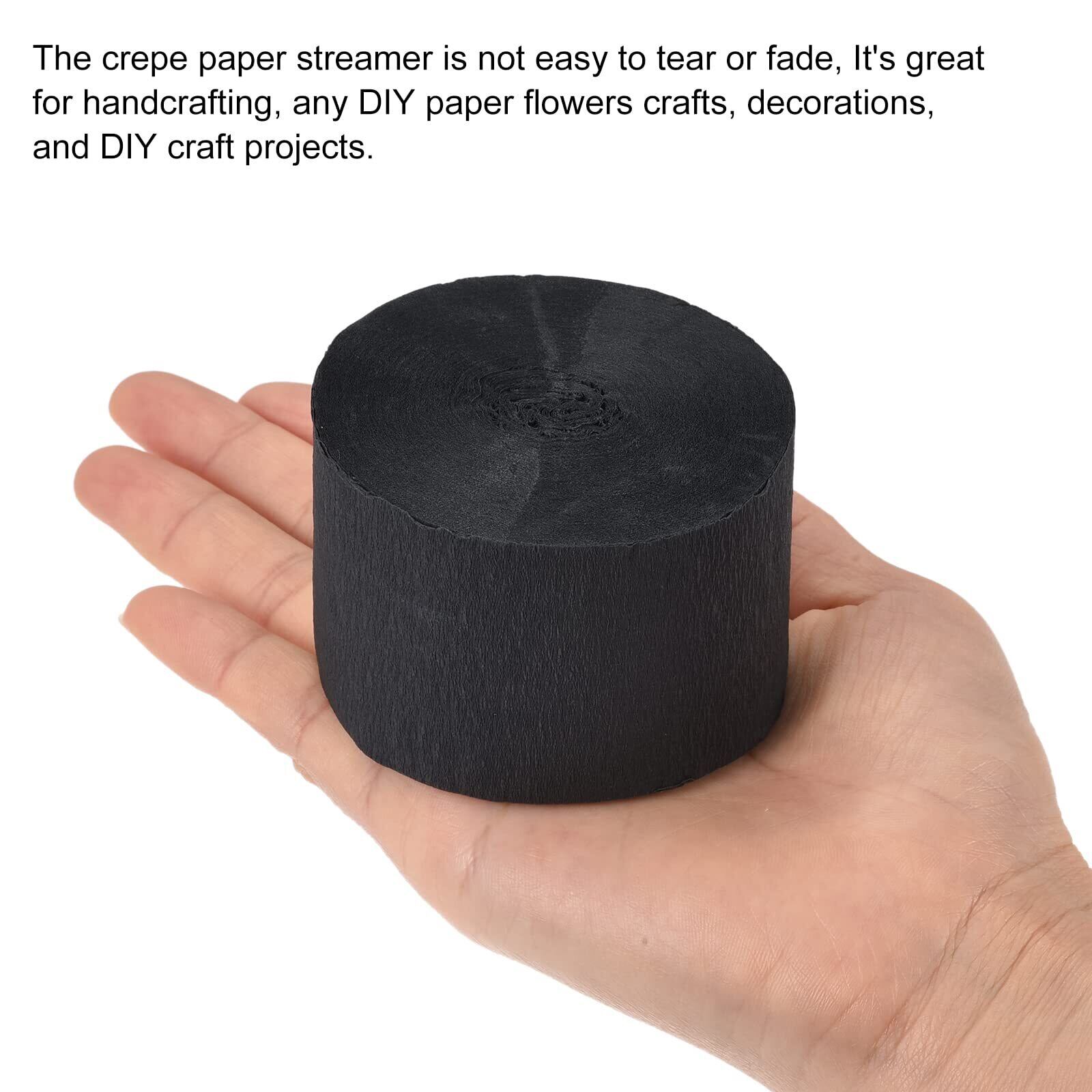 uxcell クレープ紙 ストリーマークレープ紙の装飾 誕生日 パーティー 結婚式 感謝祭 クリスマスの装飾 DIY用 ブラック 長さ25 m 幅4.5 cm 3個