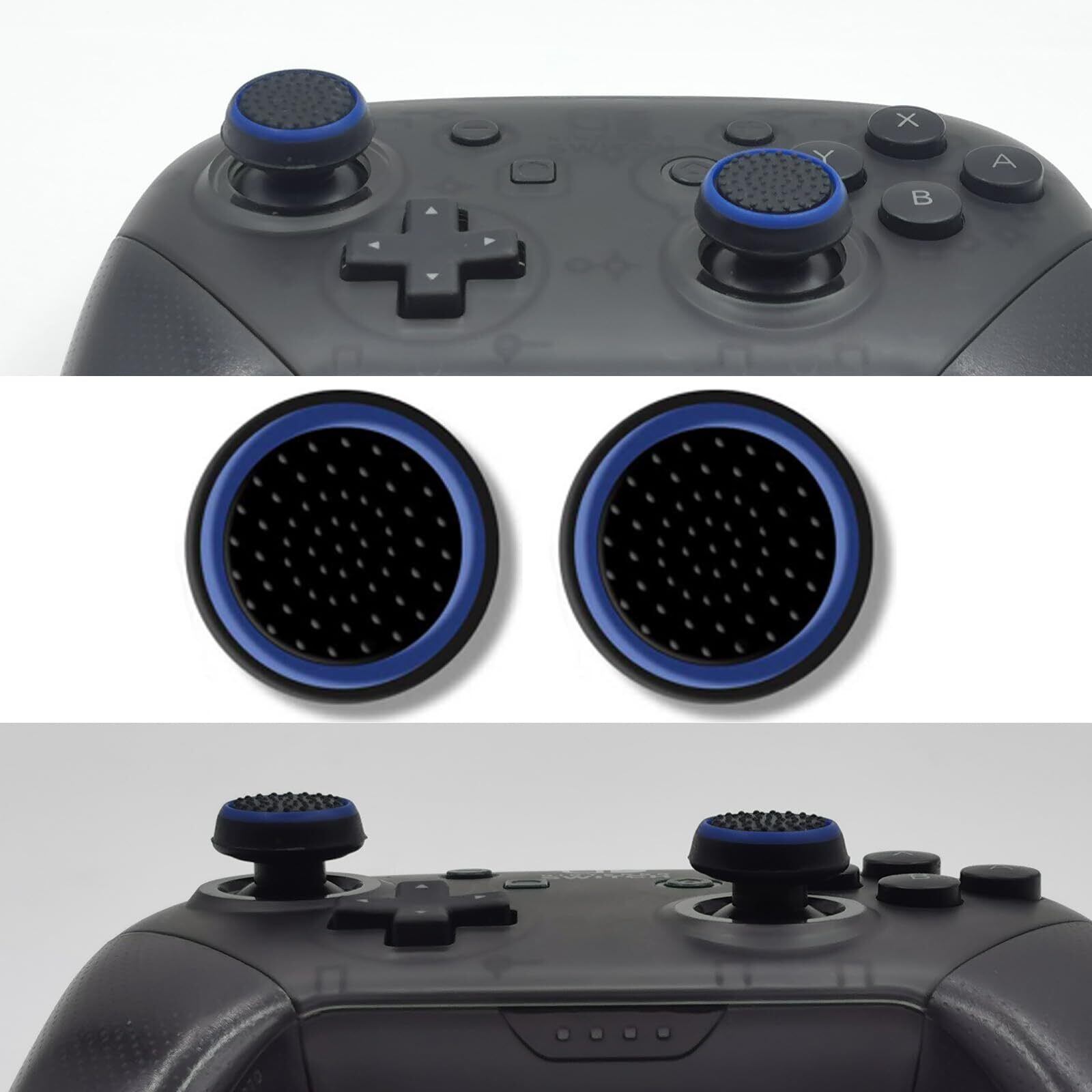 【対応可能なコントローラー】PS5コントローラーに対応、PS4コントローラーに対応、XboxSeries Xコントローラーに対応、Xbox Oneコントローラーに対応、Switch Proコントローラーに対応できる親指スティックカバーです。*ご注意Nintendo Switch joy-conとSwitch Liteコンソールには使用できません*