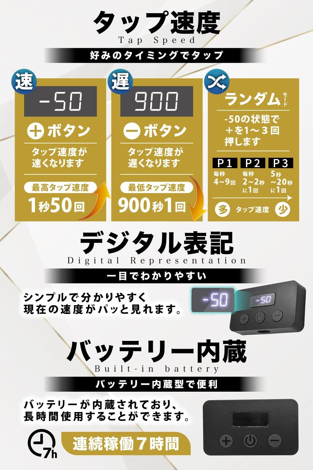 この最新連打装置は「タップスピード調整モード」を搭載し、タップ速度をお好みに合わせて調節できます。秒速50回という圧倒的なタップ速度に加え、タップスピードを遅くするモードも新たに追加されました。さらに、ランダムタップモードも完備しており、タップ速度は本体のデジタル表示で一目で確認可能です。