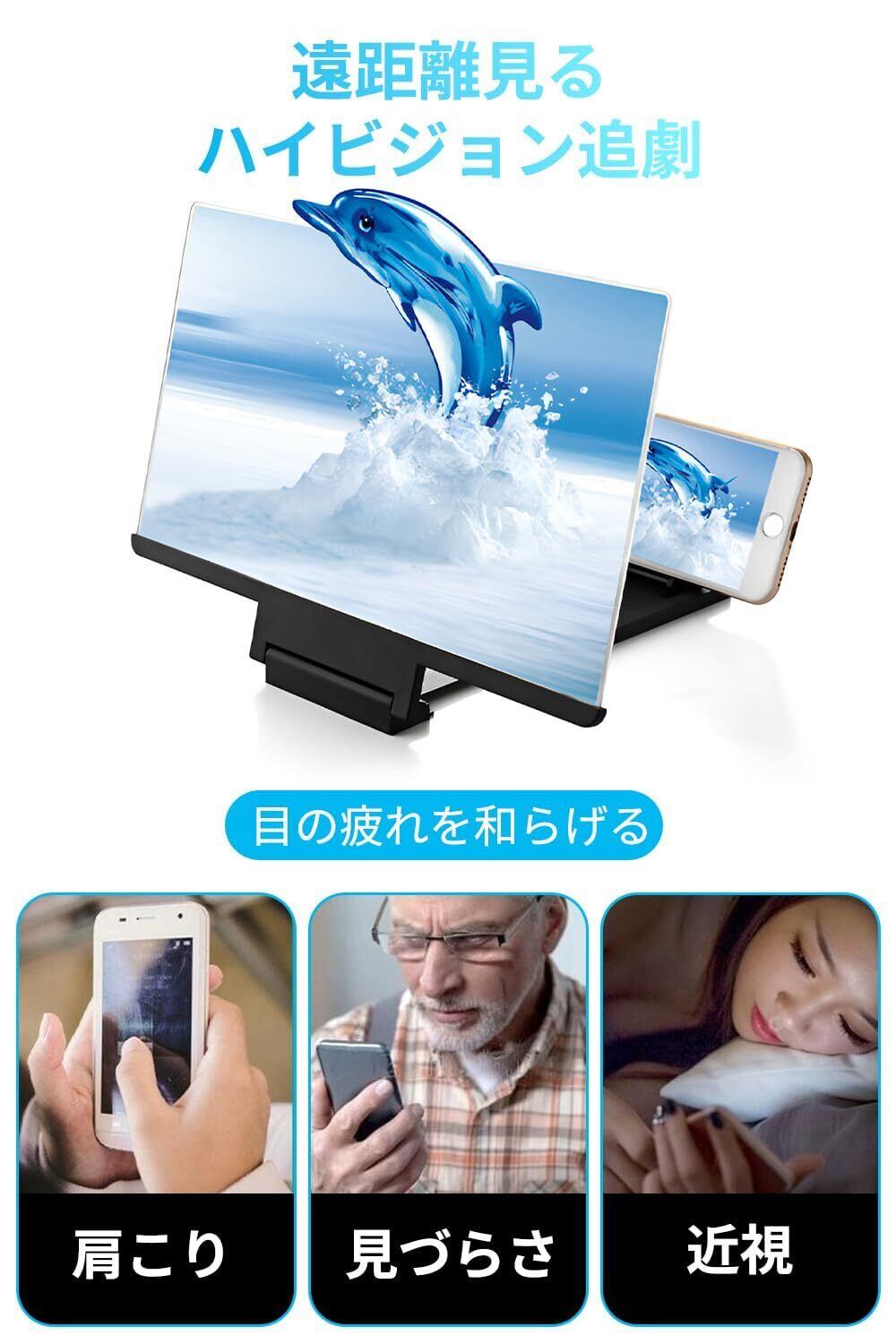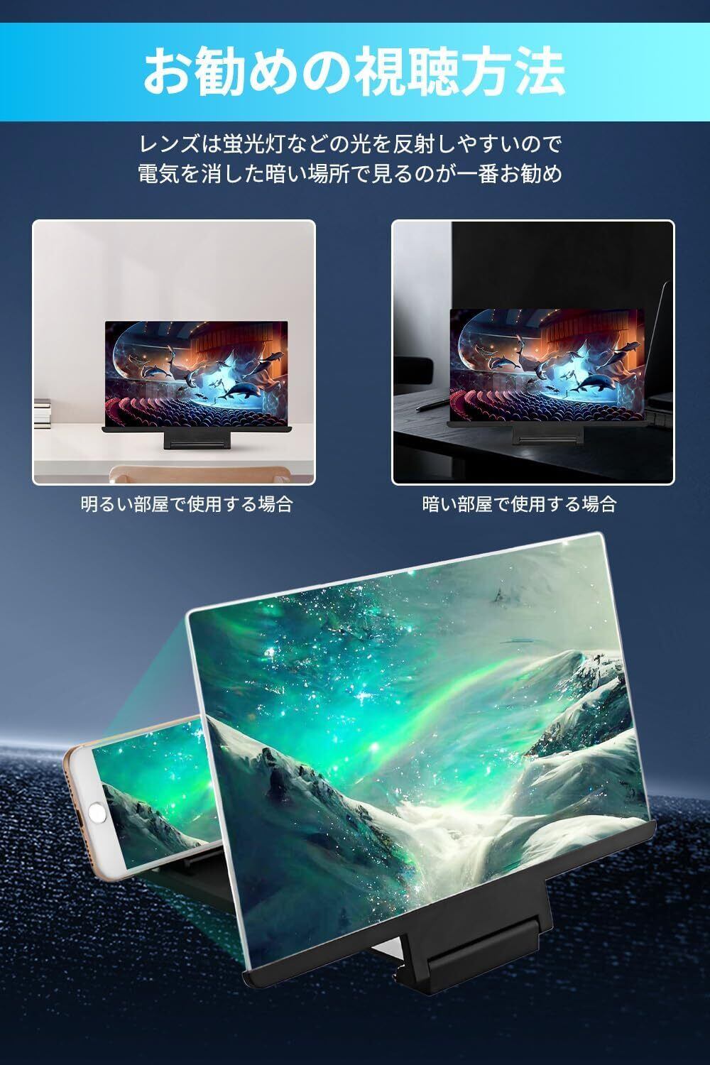 【多様な場面に対応できる】スクリーン拡大鏡は画面を簡単に拡大することができ。球形継手の設計を採用しているので,360°まで回転できます,引っ張りタイプのデザインで、画面を傷から保護できます。折りたたみ式のデザインを使用して、リビングルーム、寝室、オフィス、キッチン、キャンプ、旅行、レジャーなどに適用します。いつでもどこでも劇場のような視覚的な宴会を楽しむことができます。マシンスクリーン拡大鏡は、シンプルでポータブルで、サイズが小さく、持ち運びが簡単です。