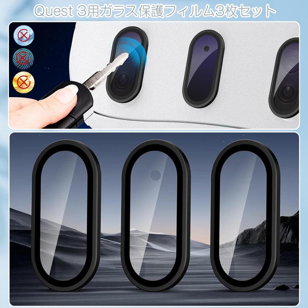 ガラス保護 フィルム 3枚セット Meta Quest 3用 フロントレンズフィルム 合金+強化ガラス 互換品 保護フィルム 360°プロテクト 摩擦 キズ 粉塵 衝撃を吸収 ガラス保護フィルム アクセサリー(ブラック)