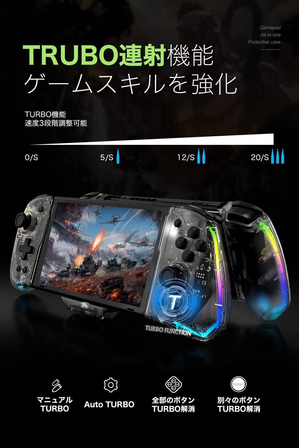 switch 携帯モード専用コントローラー 一体式コントローラー グリップコントローラー 【Switch/Switch有機ELモデル対応】透明 RGBライト 背面ボタン 本体グリップ スイッチ コントローラー HD振動 TURBO/AUTO連射機能 六軸ジャイロセンサー 充電不要 挿すだけ使用