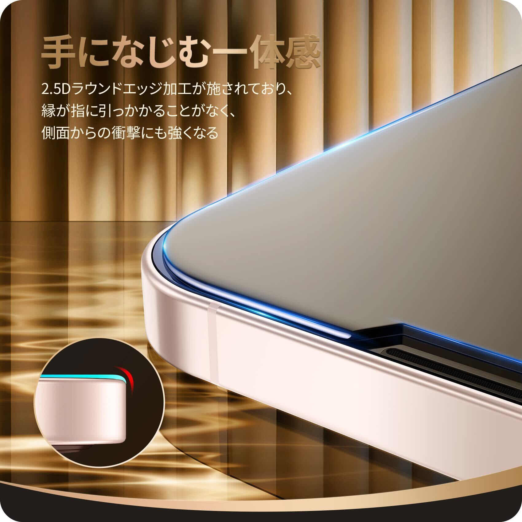 特徴 高透過率 / 2.5Dラウンドエッジ加工 / 9H硬度ガラス / 優れた耐衝撃性 / 飛散防止 / 全面保護 / ケースと干渉せず / 初心者でも貼付簡単