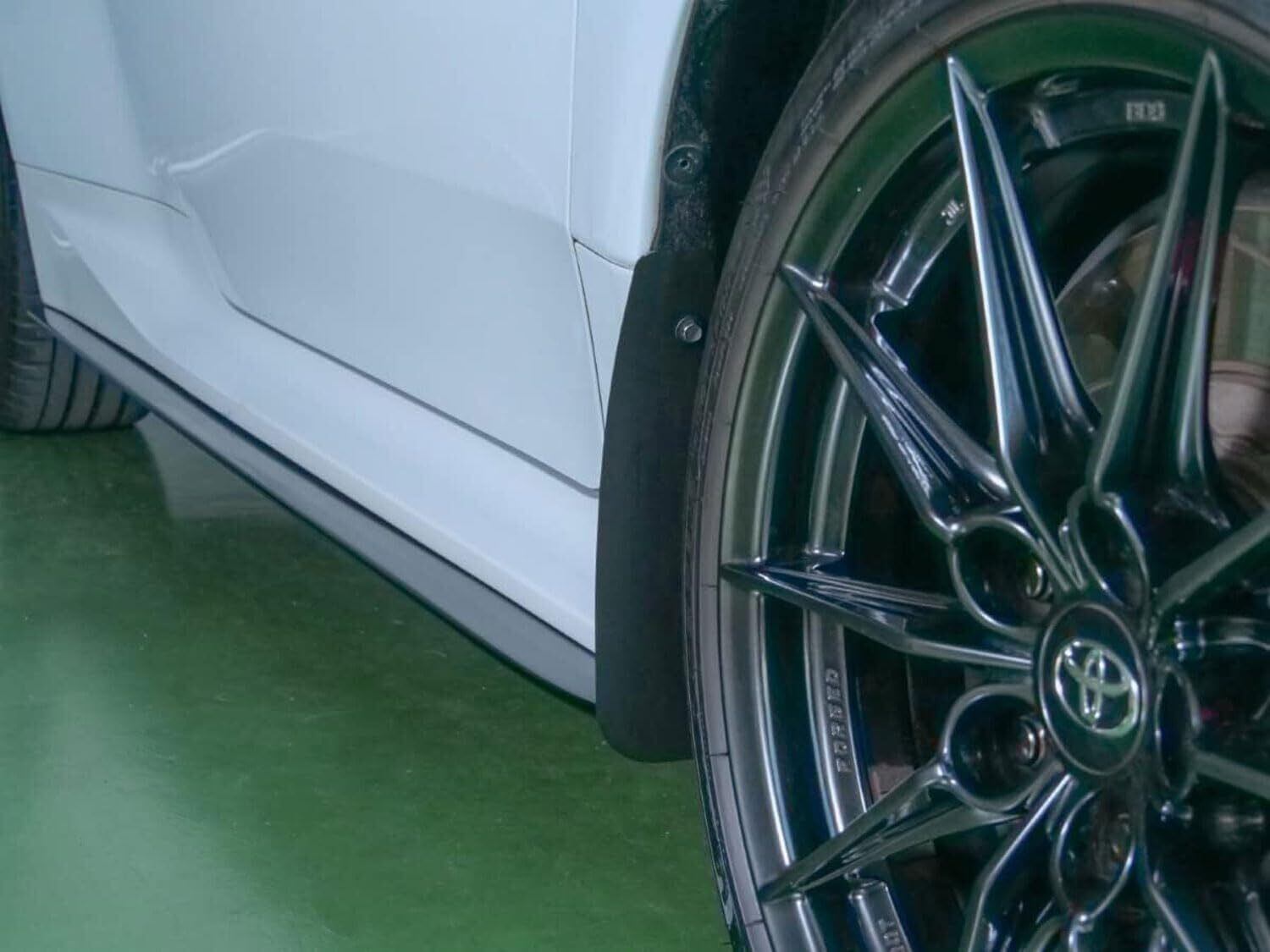 純正フェンダーライナー取付用タッピングスクリューと、付属のクリップ2個(片側)による簡単取付取付時のフラップ出しろ調整が可能(調整幅約7mm)