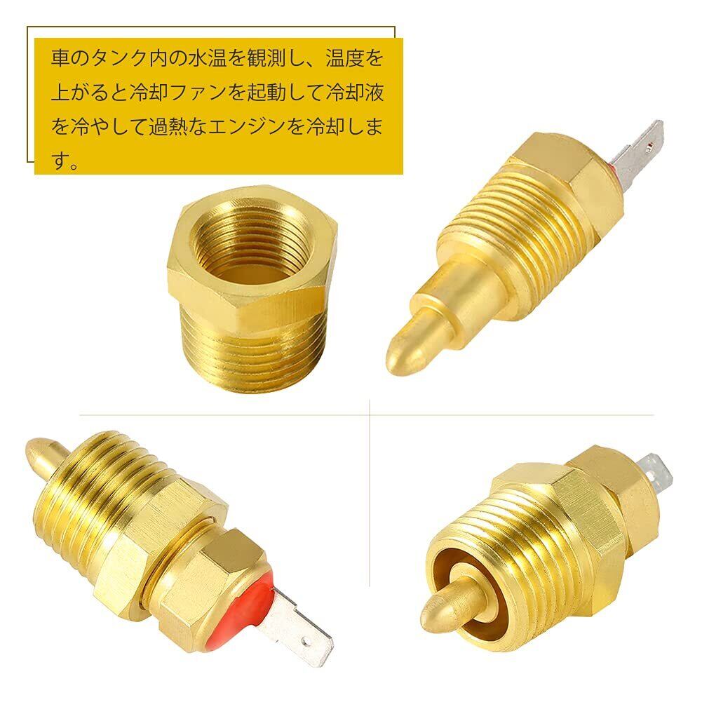 SOCOCO ファンサーモスタット 水温センサースイッチ 温度センサースイッチ 冷却ファン用スイッチ カバー付き 六角ナット付き 防食/耐久性 送信ユニットのネジ3/8インチスレッド 自動車エンジン冷却ファンスイッチ 10/12/14/16インチファン適用 ファンオン温度(F)185度F/オフ温度(F)175度