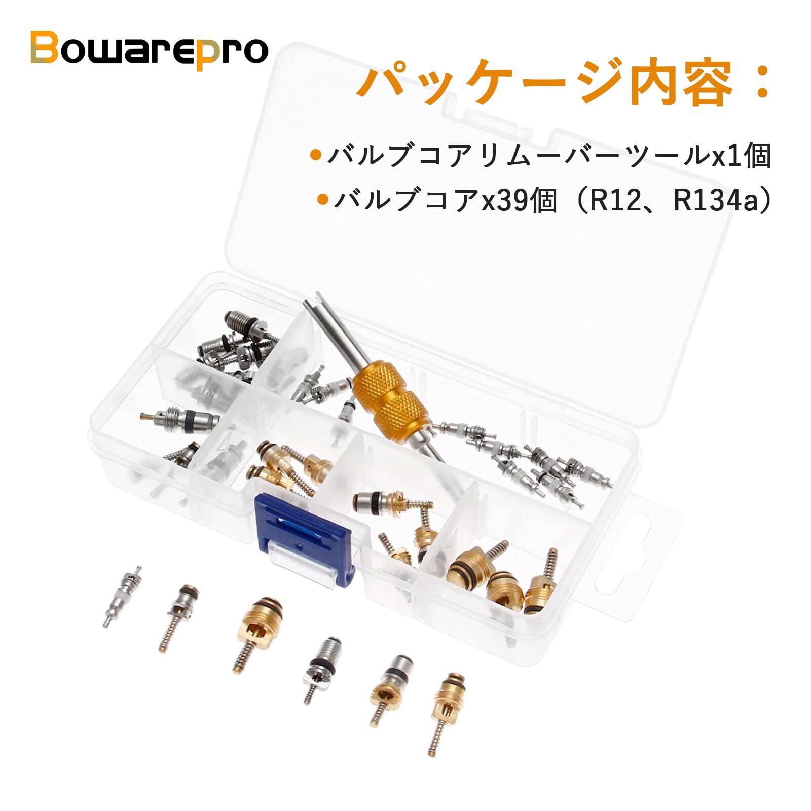 Bowarepro 40PCS エアコンバルブコア 虫回しドライバー エアバルブレンチ 車A/C R12 R134a冷媒交換 修理パーツ 冷凍タイヤバルブステムコアリムーバーツール