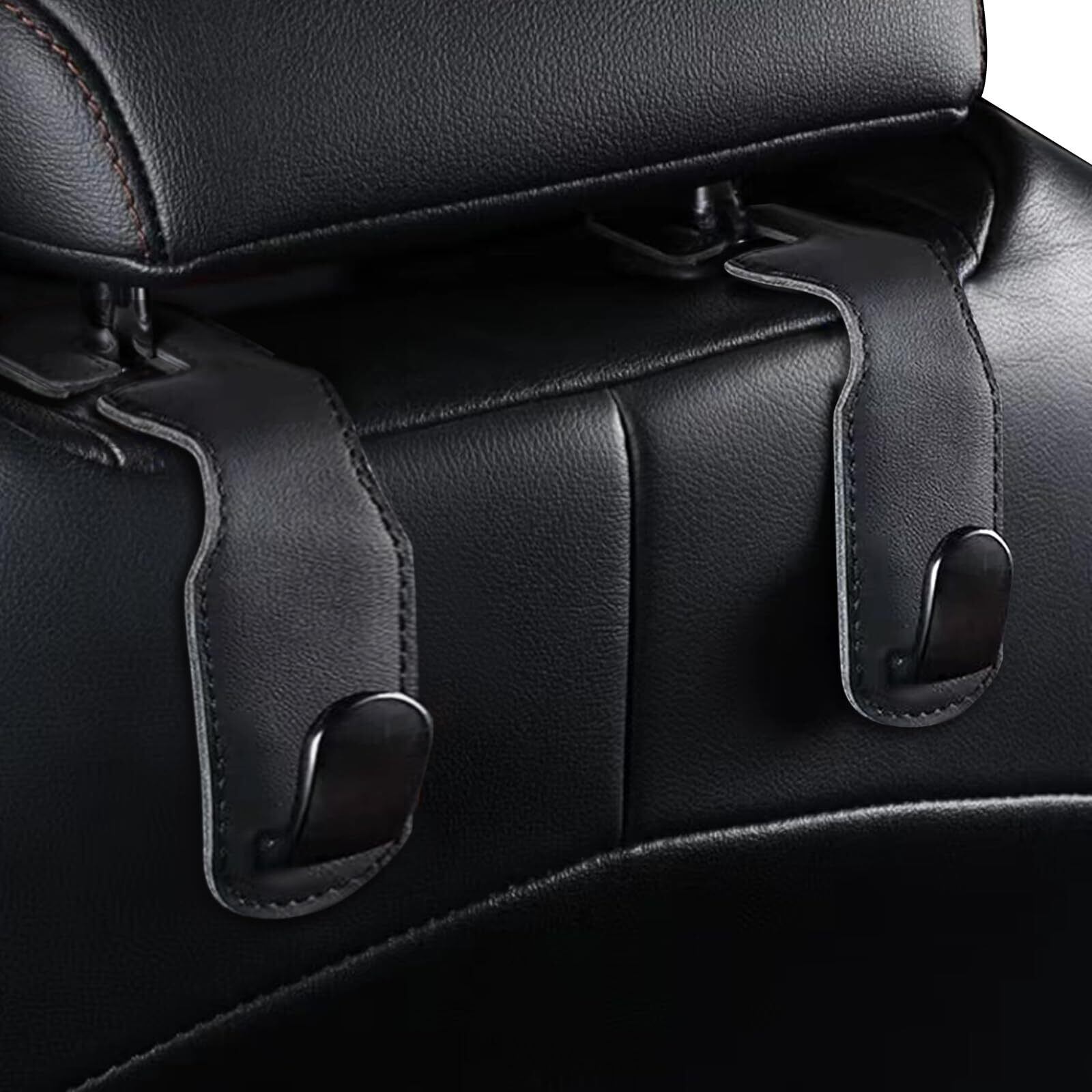 【特別なデザイン】やわらかいレザーの素材で自由に曲げることができ、また、カーブのデザインで、ほかの車用フックより車シートの形状にもっとフィットします。