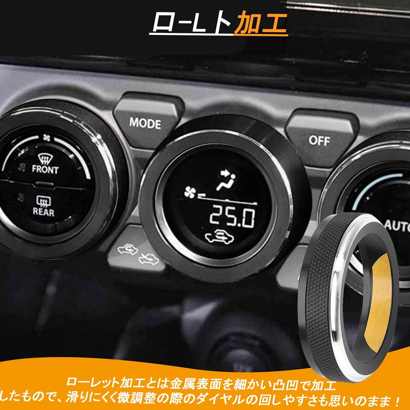 新型ジムニーJB64W、ジムニーシエラJB74W(AT車)専用のアルミ合金製エアコンダイヤルカバー。ブラックの高級感あふれるデザインで、車内を格上げ。脱脂シート付属で、装着前の清掃も簡単。ローレット加工で滑りにくく、ダイヤル操作が快適に。両面テープで簡単装着、サイズ誤差にも対応。軽量かつ耐久性に優れ、車のカスタマイズに最適です。